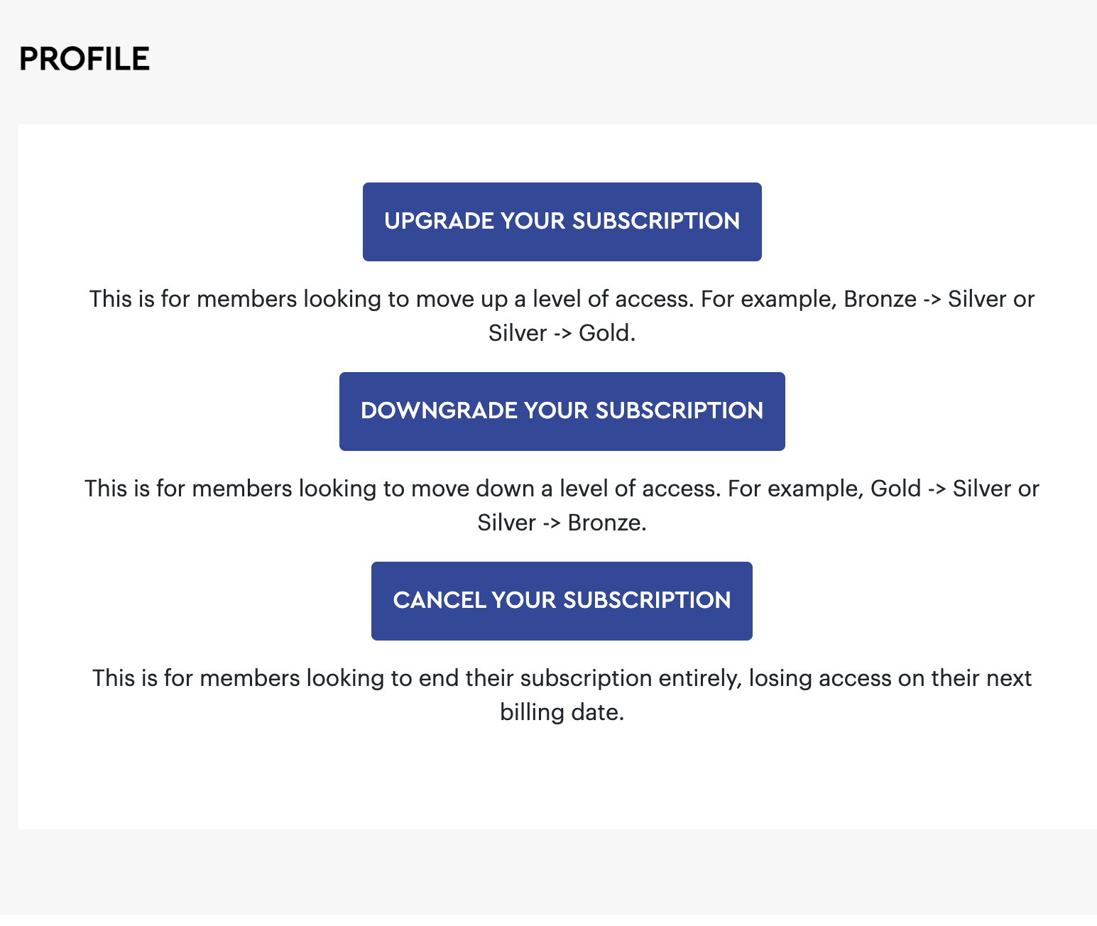 To make any changes to your subscription or update your payment method, simply go to your profile and select Manage Subscription. Everything can be updated from there.